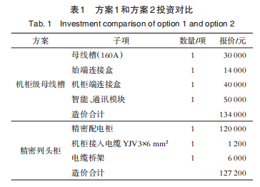 針對(duì)方案1和方案2不同機(jī)柜末端配電方案,兩者的投資造價(jià)對(duì)比如下,如附表1所示。
